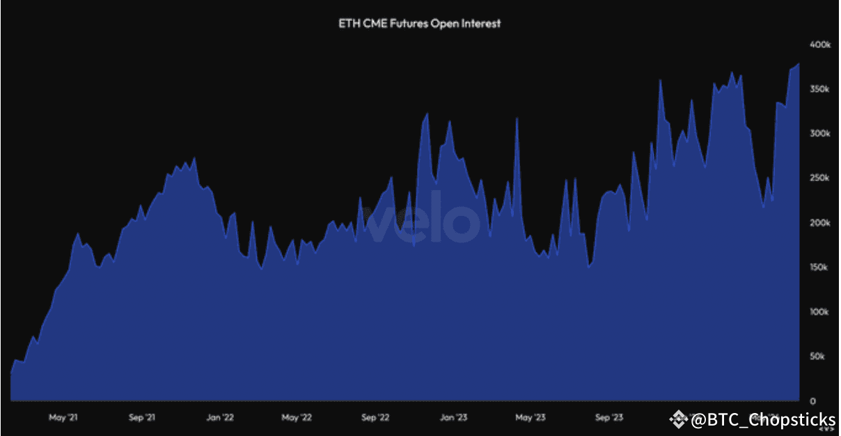 作为机构期货交易的关键平台,CME 自11月以来的未平仓合约激增。今年5月,ETF 批准的传闻引发了急剧上升。结论?机构押注于即将到来的 ETF 批准,并长期看涨 ETH。