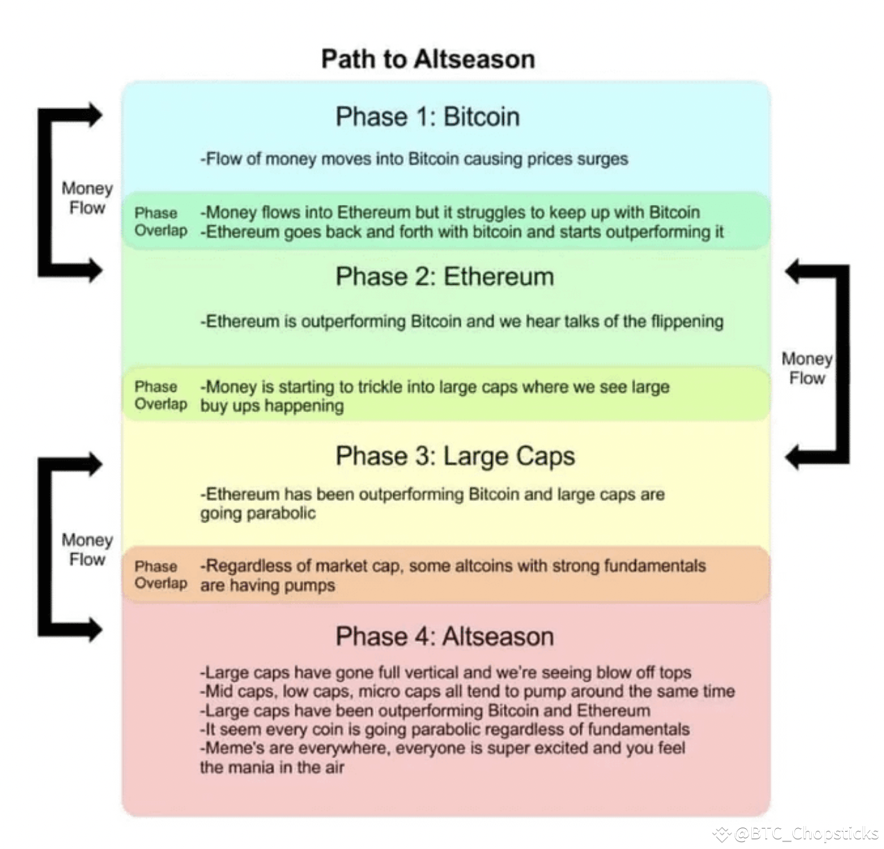 通常的山寨季路径——从BTC到ETH到大市值再到中低市值——可能会在ETH ETF启动后开始。最初,BTC的流出和新资本将涌入ETH,最终流向其他山寨币。