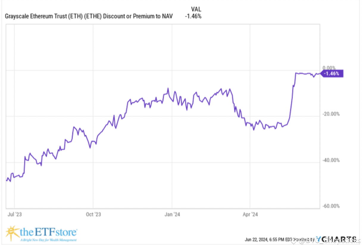 - ETHE折扣从50%减少到1.5%,显示大资本的更多信心