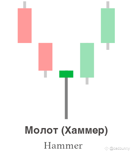 "Молот" — это бычий разворотный паттерн, который появляется на дне нисходящего тренда. Он указывает на возможное изменение направления цены с нисходящего на восходящее.