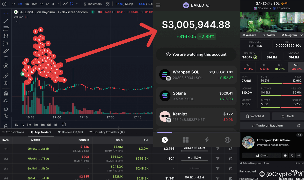 With a sharp eye, a sniper invested 70 $SOL to acquire 81.78 million $BAKED and flipped them for 21,581 $SOL