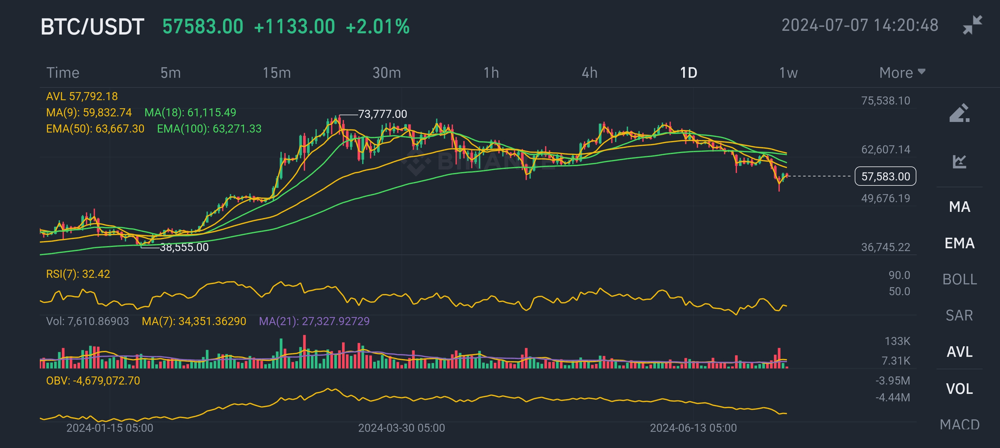 On Monday, the price of bitcoin hit resistance at the daily level of $63,956, which led to a 9.2% decrease over the following three days. It had dropped below the weekly support level of $58,375 by Thursday's close. As of Friday, it was trading at roughly $55,314, which is a 2.8% decline from the previous day's closing price.