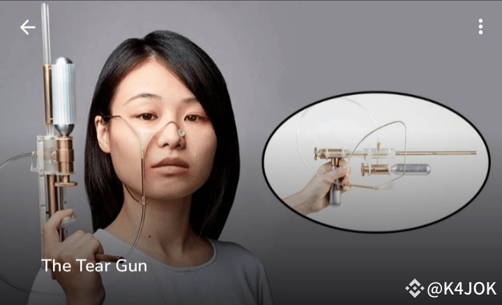 The Tear Gun works by catching tears under the wearer’s eye with a silicon pocket. They are then funneled into a steampunk-like brass system. A small bottle filled with dry ice fixed to the back of the pistol freezes the teardrops into solid bullets, ready to be fired into the face of authority.