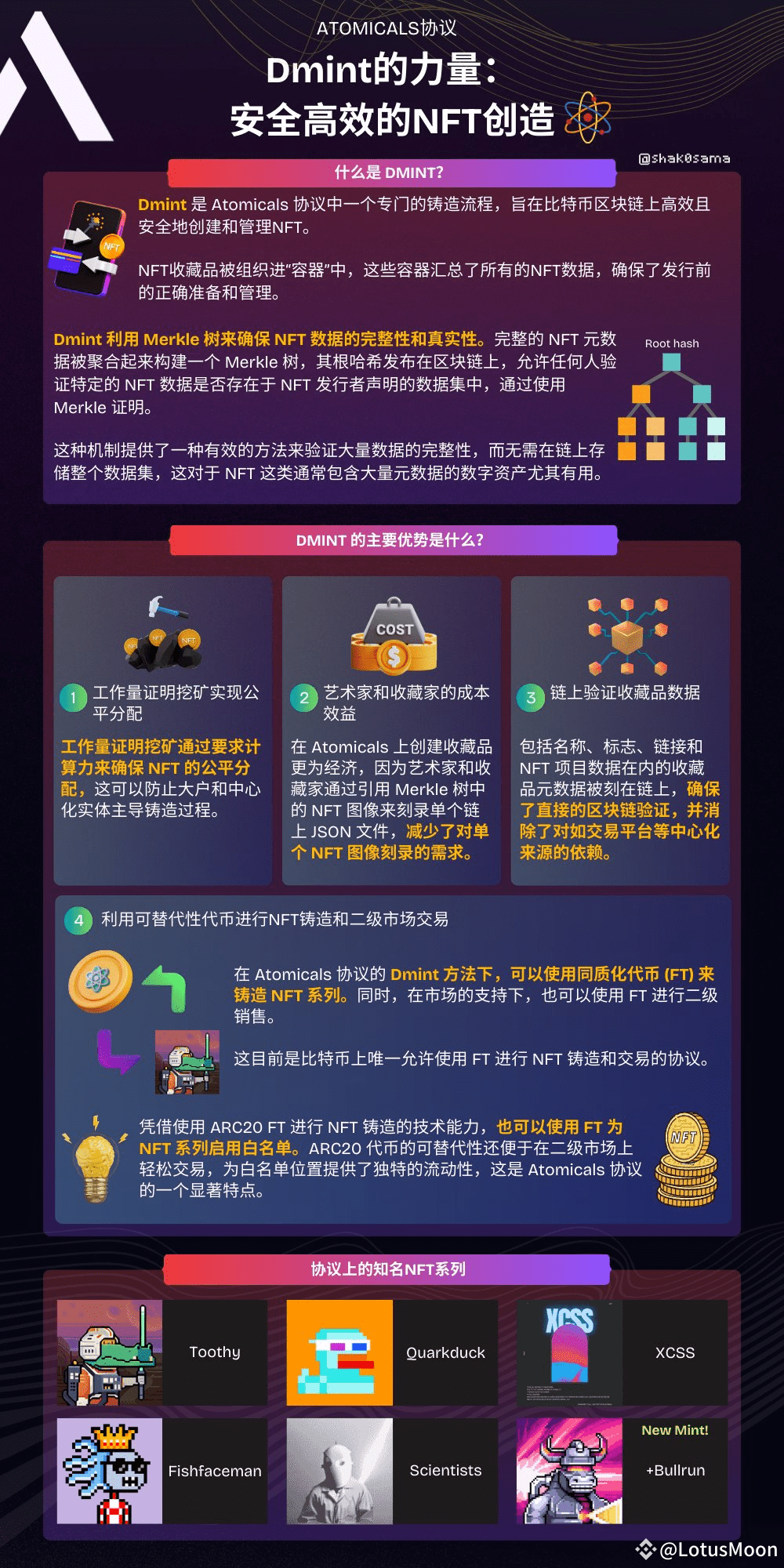 Dmint 通过利用 Merkle 树为Bitcoin 上的 NFT 铸造在 Atomicals 中进行了革命性改进,实现了高效和安全的数据管理。