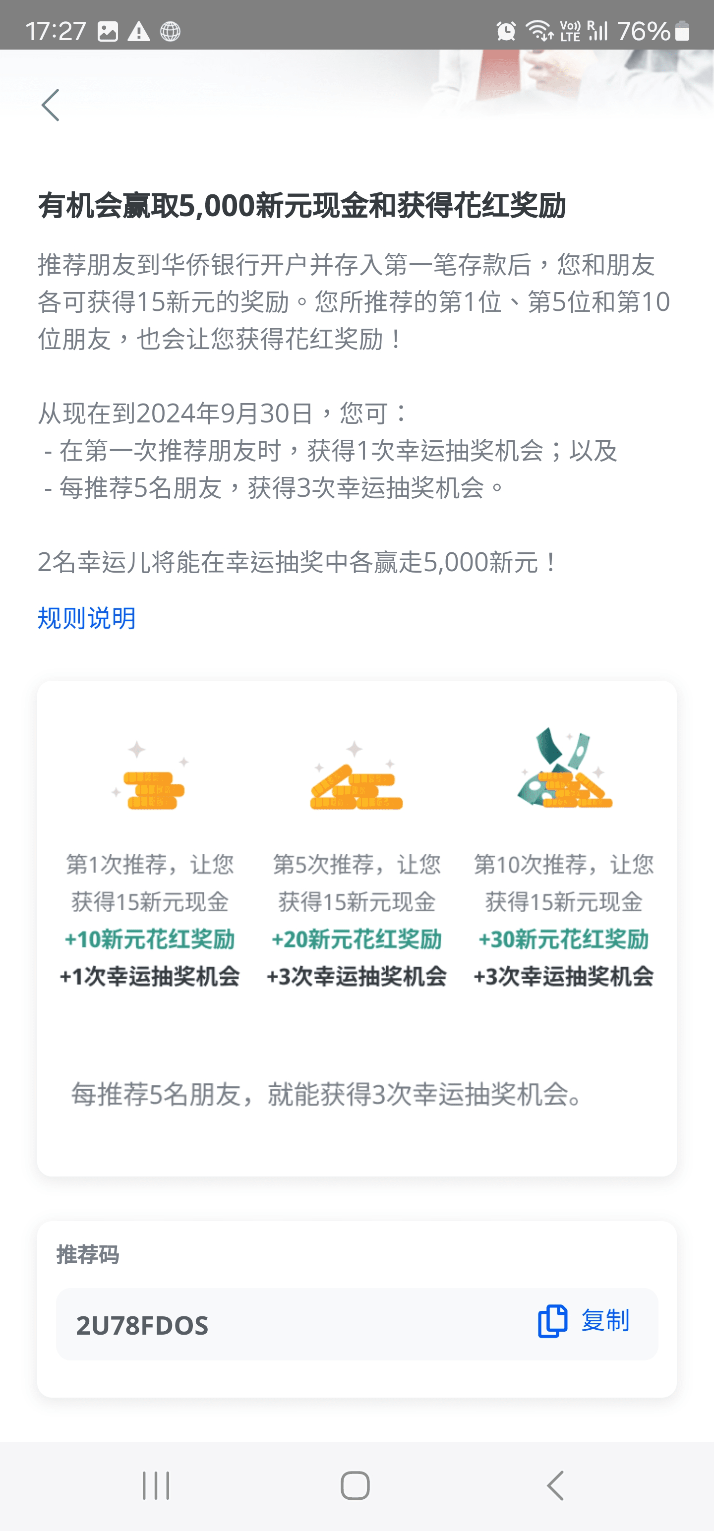 转账到卡里1000新元就可以获得15新元的奖励,几乎和国际电汇的费用抵消。