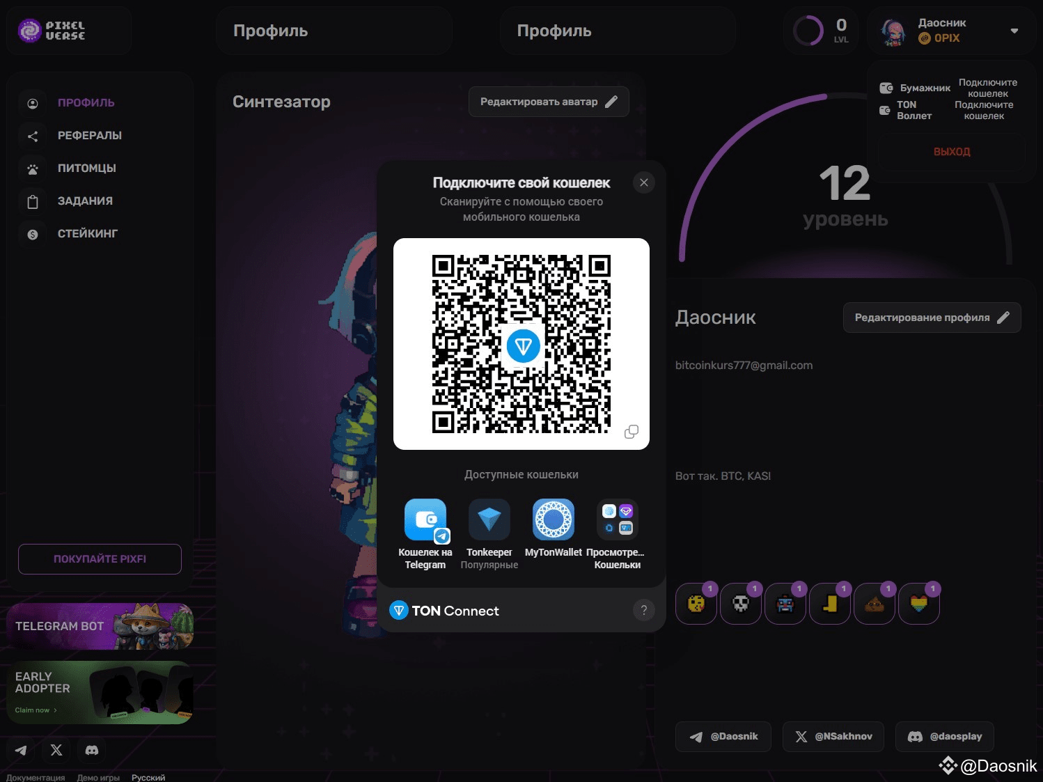 Ваш номер кошелька должен совпадать в Dashboard Pixelverse и в боте PixelTap.