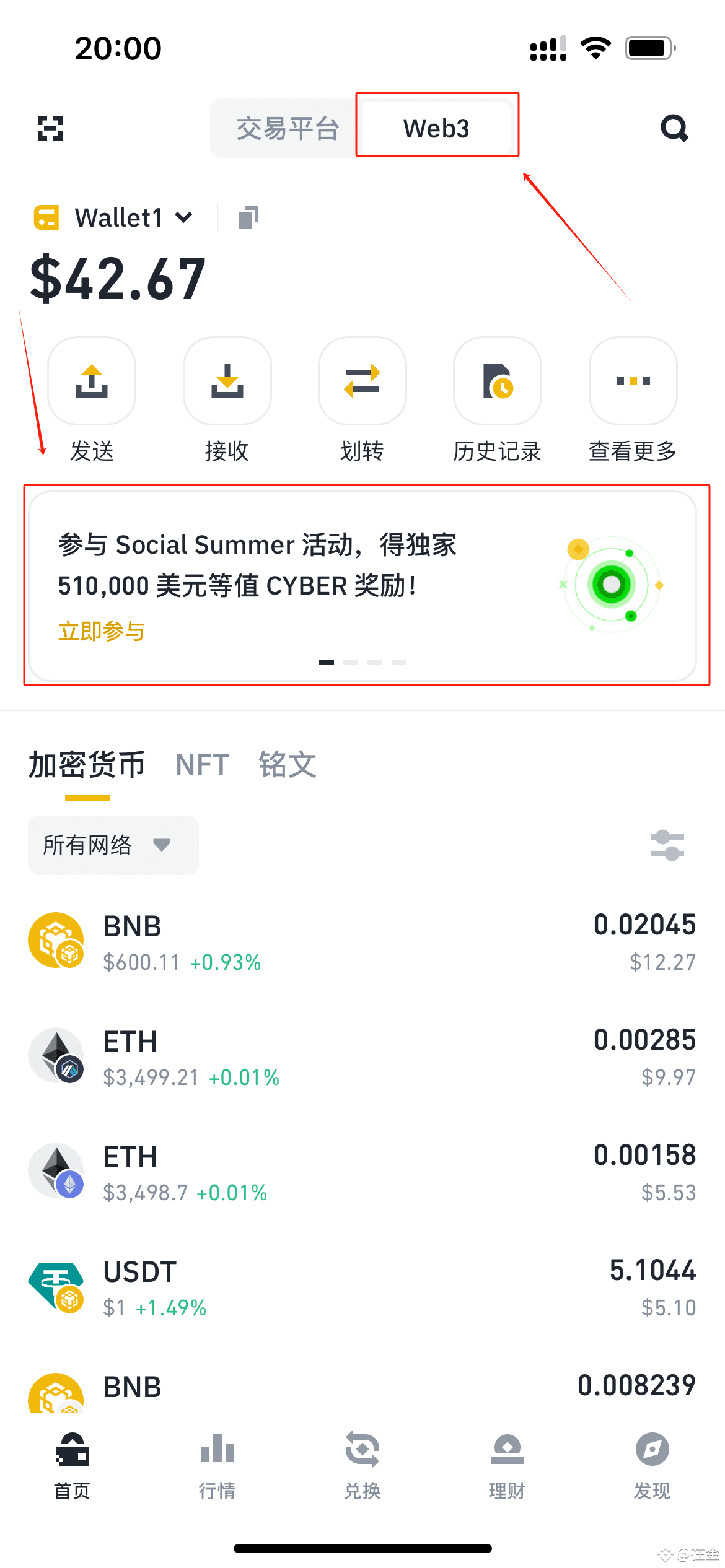 首先我们切换到币安web3钱包界面