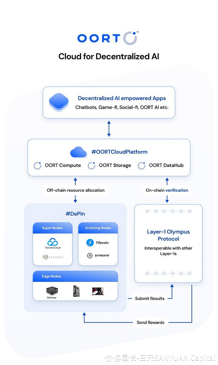 我们拿 AI 项目@oortech 来举例,OORT 是为去中心化 AI 打造的云计算平台,成立于 2021 年 5 月。旨在通过去中心化网络搭建更公平高效的 AI 应用基础设施,并将开放性和透明性带入 AI 模型多阶段的开发中,促进多方协作。其目标是打造民主化和大众化的 AI 开发流程。