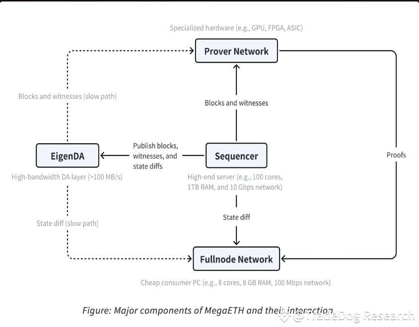 Unlike conventional blockchains where all nodes perform identical tasks, MegaETH employs a more nuanced strategy called “Node Specialization” where different nodes have different hardware requirements based on their roles. This allows MegaETH to optimize performance while maintaining decentralization and security.