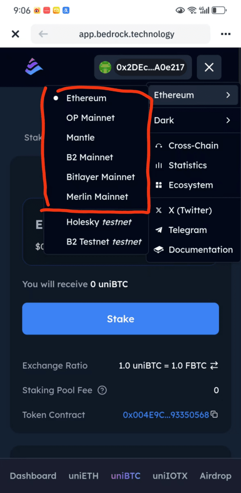 很简单,这个直接从主网提$BTC 到钱包去质押