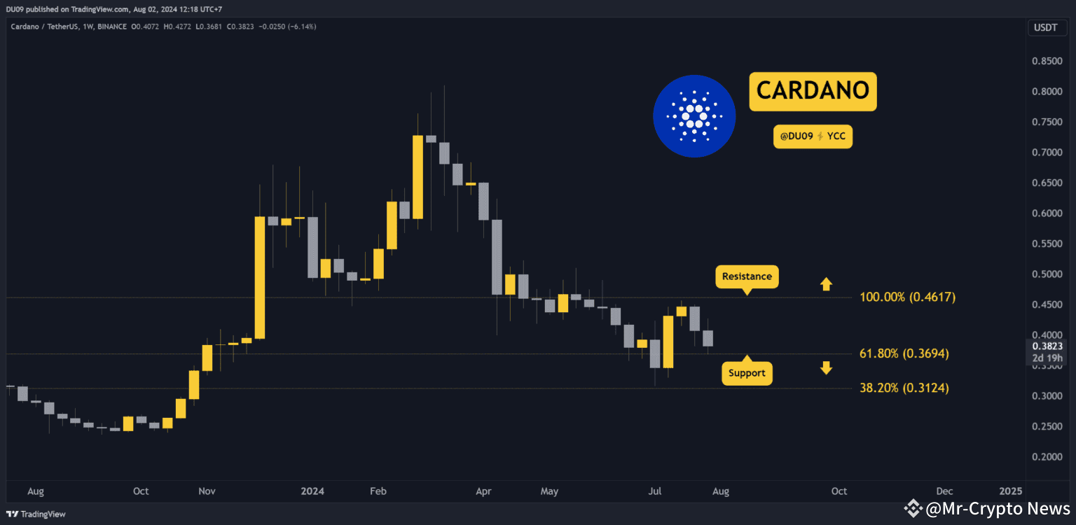 This week, ADA took a hit of 6%, following a pullback by investors. It was unable to reverse its decline and settled around 37 cents, briefly spiking at this level but falling back into bear market territory.