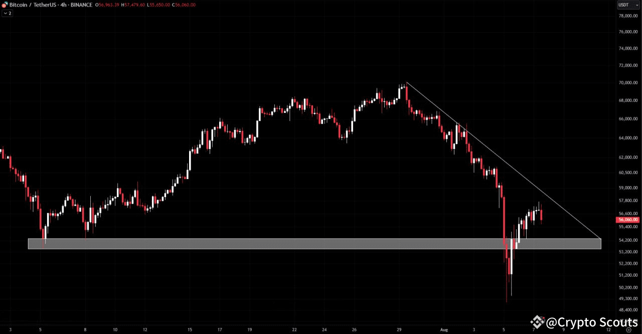Биткойн недавно восстановил свой горизонтальный уровень поддержки, и это движение поддержано значительным объемом торгов. В настоящее время цена находится чуть ниже нисходящей трендовой линии, которая является важной областью сопротивления.