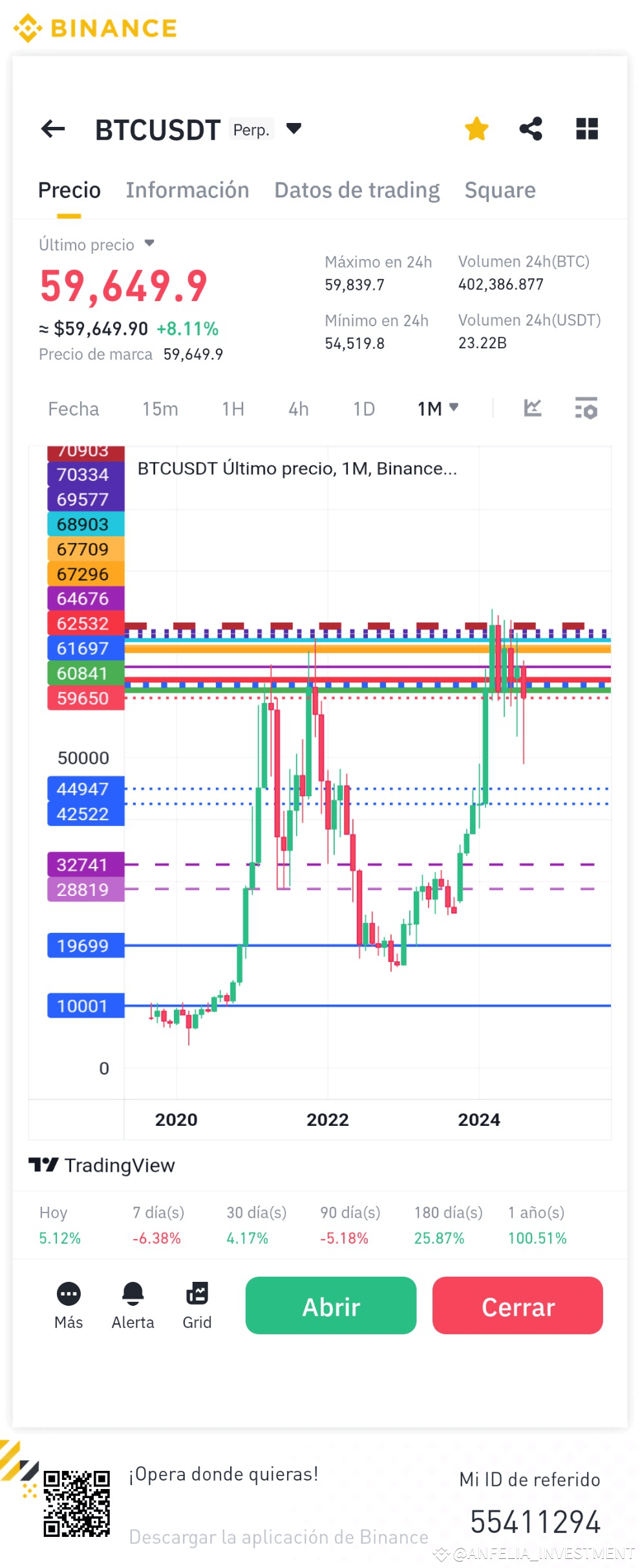 En resumen, podemos denotar que el mercado #Bitcoin ha tenido una corrección en el precio en las últimas 24 horas llegando a puntos mínimos de $54511.5 USDT donde tuvo un fuerte impulso alcista en la temporalidad de 1 hora manteniéndose en los $59665.4 USDT con un 8.12% de margen en ganancias.