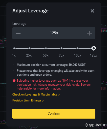 Leverage x125: This is a much higher leverage. If you have just $1, Binance allows you to trade with $125. Your potential profits could be 125 times bigger!