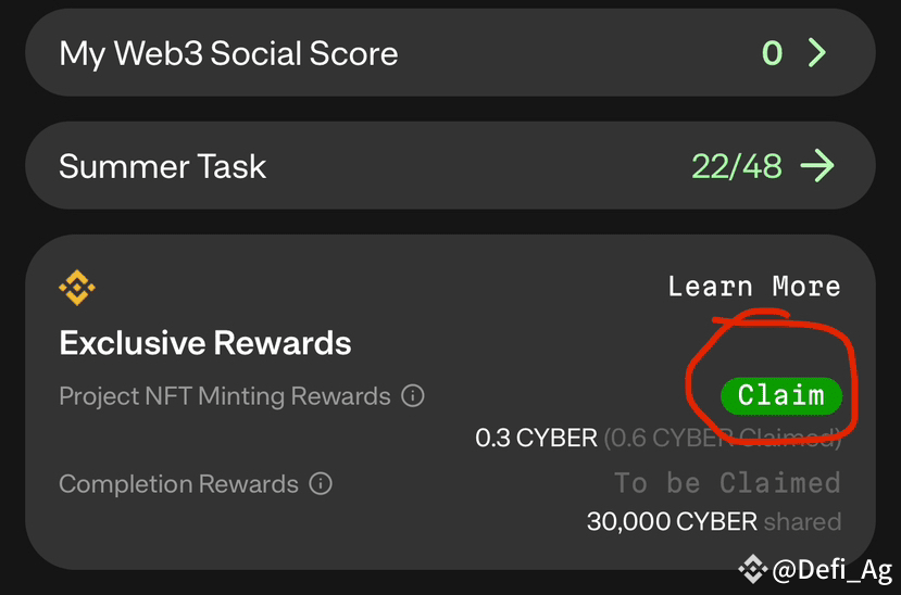 第一步:进入活动页面之后,链接好钱包,在Exclusive Rewards中点击claim。(将作为补贴的gas的cyber申领到cyber网络下)