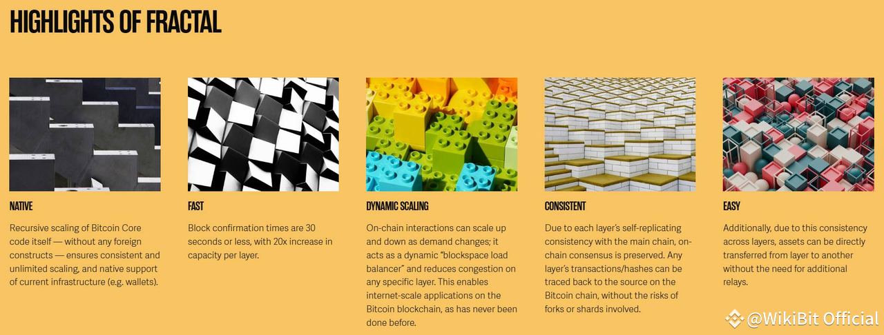 Fractal Bitcoin improves transaction processing capacity and speed by recursively creating infinite expansion layers on the BTC main chain using the BTC core code, while maintaining full compatibility with the existing Bitcoin ecosystem. Fractal creates multiple expansion layers on top of the BTC main chain, forming a tree-like recursive structure. This structure allows each layer to further expand in a "forking pattern," increasing the network's parallel processing capacity. Fractal possesses the following 6 characteristics:g capacity and speed by recursively creating infinite expansion layers on the BTC main chain using the BTC core code, while maintaining full compatibility with the existing Bitcoin ecosystem. Fractal creates multiple expansion layers on top of the BTC main chain, forming a tree-like recursive structure. This structure allows each layer to further expand in a "forking pattern," increasing the network's parallel processing capacity. Fractal possesses the following 6 characteristics: