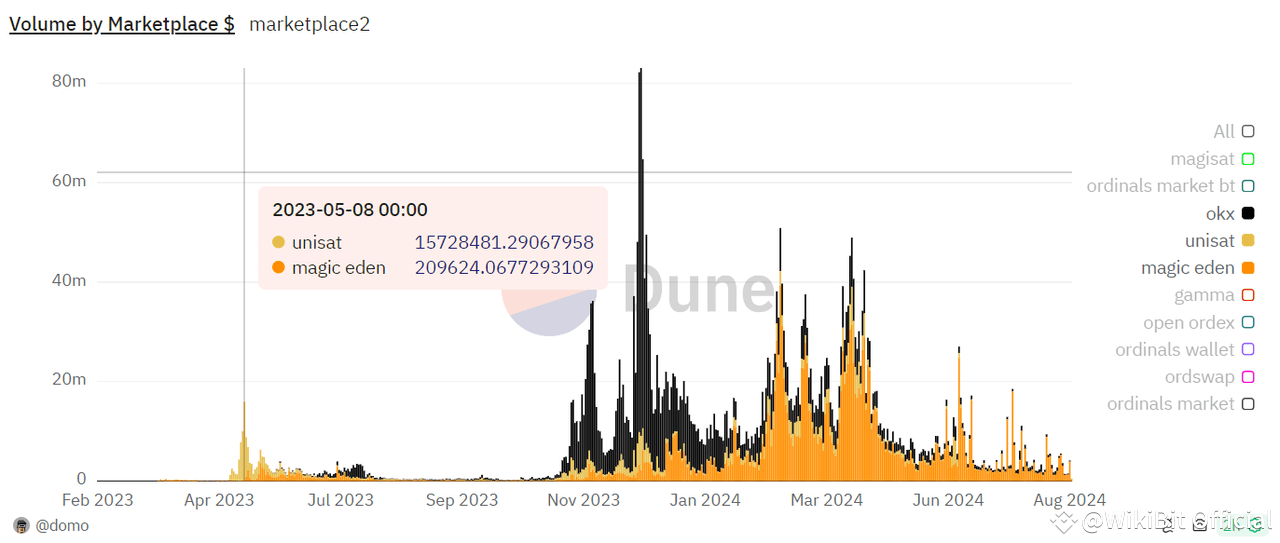In March 2023, developer Domo introduced the BRC-20 standard using the Ordinals protocol and Inscriptions, allowing users to issue and trade tokens on the Bitcoin network, similar to Ethereum's ERC-20 standard. The issuance of new assets created significant wealth opportunities, attracting the attention of many developers and venture capitalists to the Bitcoin ecosystem.With the rise of the Ordinals protocol and the BRC-20 standard, user-friendly asset management tools and trading markets became essential for participants. Unisat is a browser-based wallet focused on the Bitcoin blockchain, specifically on the Ordinals and BRC-20 standards. Leveraging its first-mover advantage, Unisat has captured a significant market share.