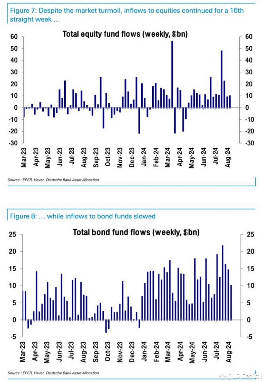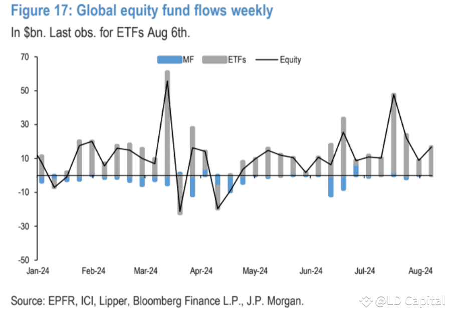 尽管市场动荡,本周股票资金流入连续第16周保持正值,甚至比前一周有所增加。而债券资金的流入则有所放缓