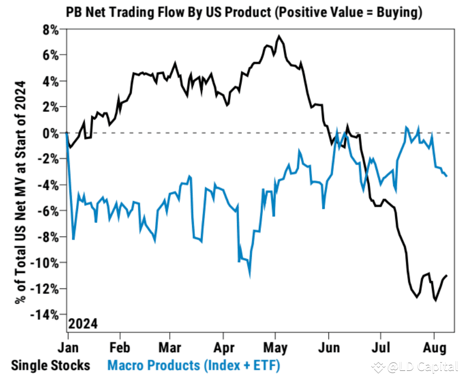 风险平价基金:最近市场波动大,他们也在减少投资,但比CTAs少一些。但因为债券价格的上涨帮助他们控制了损失。