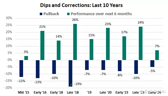 股市的下跌和调整如果没有伴随经济或企业盈利衰退,往往都是暂时的,随后会出现不错的涨势: