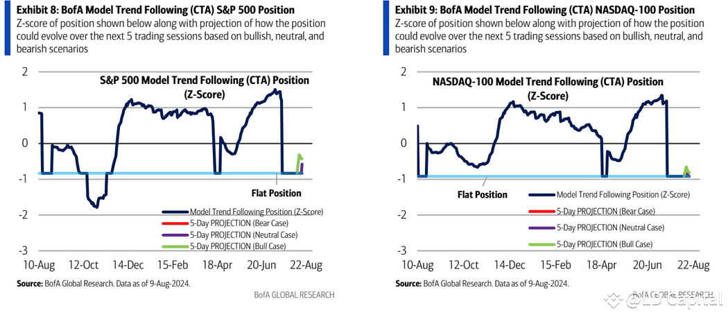 美银的CTA策略模型显示,未来一周美股CTA资金倾向于加仓,因美股长期趋势仍然看好,因此CTAs不太可能很快转为空头,反而可能在股市找到支撑后迅速重建股票多头头寸。