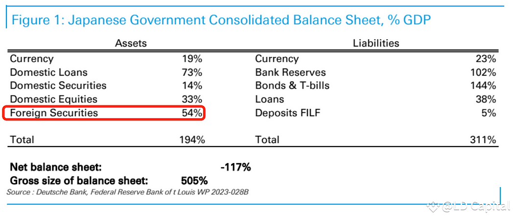 3. 第三部分是国内的投资者,也就是日本自己的投资者用日元去买外国的股票和债券。比如日本的退休基金为了将来要付的钱,会用日元去买外国的股票和债券。这种交易在调整之前大概有3.5万亿美元,其中大约60%是外国股票。