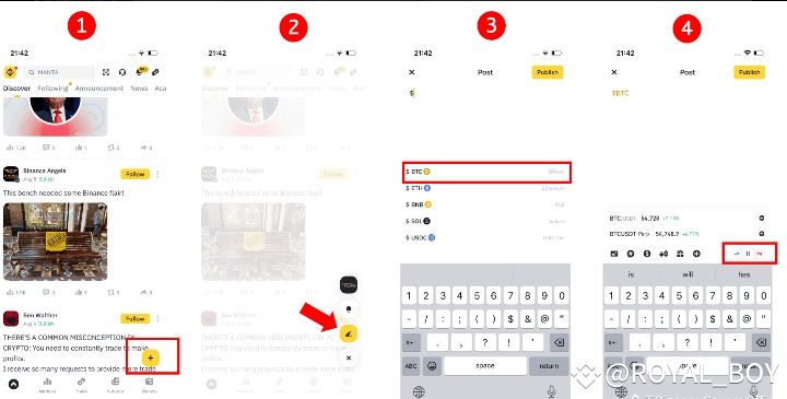 Option 2: Create a post through the “+” posting button on Binance Square, adding the $BTC cointag, and vote bullish or bearish in the content editor.