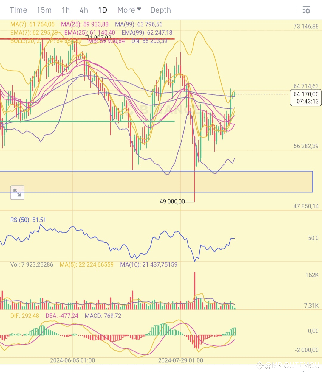 من خلال هذه المؤشرات، يبدو أن البيتكوين في وضع صعودي محتمل إذا تمكن السعر من اختراق المقاومة عند 64,170 واستمر في الاتجاه الصعودي. الإشارات الإيجابية من MACD والمستويات المحايدة من RSI تدعم هذا السيناريو.
