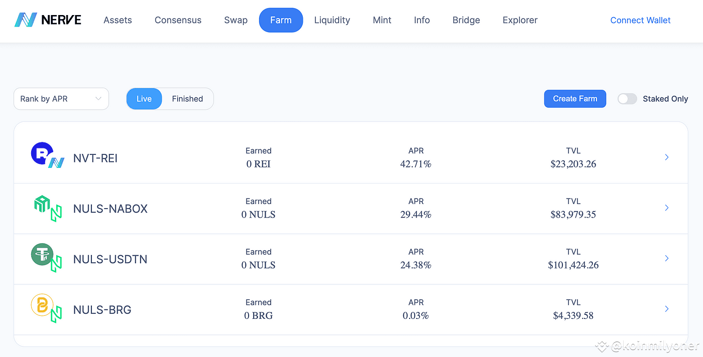 NerveNetwork offers Nerve consensus staking and NerveSwap LP farming:
