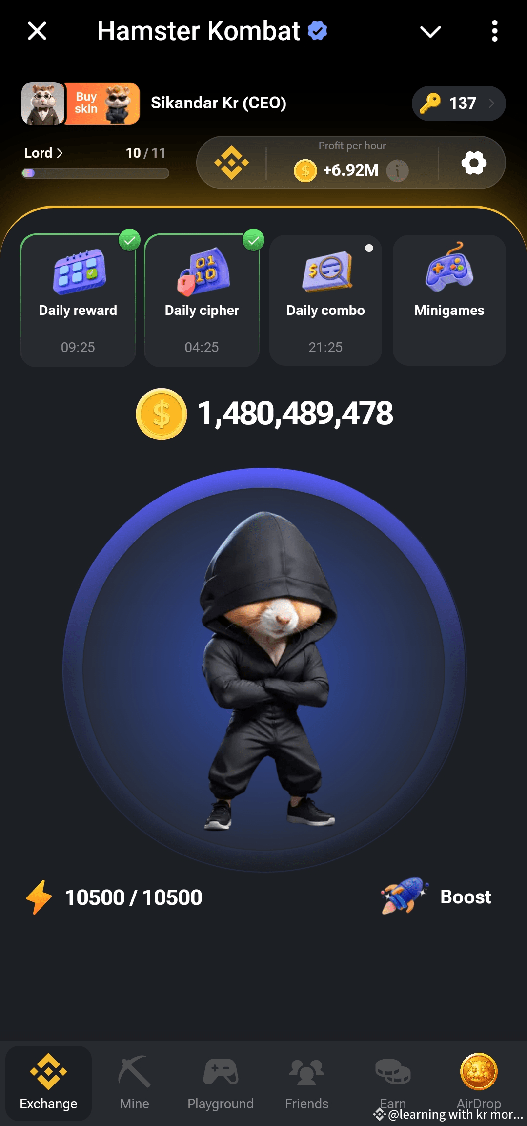 2. And I'm reched lord leval and PPH hour 6.91m what is your leval comments in and if you are new then comments here i will share with hamster kombot link free joining and earn Money together