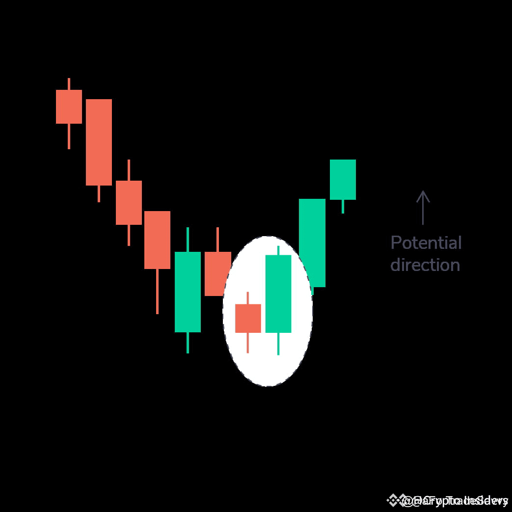 Đây là mô hình gồm hai nến, trong đó nến đầu tiên là nến đỏ ngắn bị bao phủ bởi một nến xanh lớn. Nó chỉ ra một thị trường tăng giá đẩy giá lên mặc dù mở cửa thấp hơn ngày hôm trước.