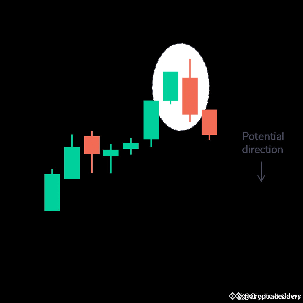 Trong phân tích biểu đồ nến, đây là mô hình gồm hai nến, trong đó nến đầu tiên là nến xanh ngắn bị bao phủ bởi một nến đỏ lớn. Nó thường xuất hiện ở đỉnh của xu hướng tăng. Nó chỉ ra sự chậm lại trong đà tăng của thị trường và xu hướng giảm sắp tới. Nếu nến đỏ thấp hơn, xu hướng giảm thường đáng kể hơn.