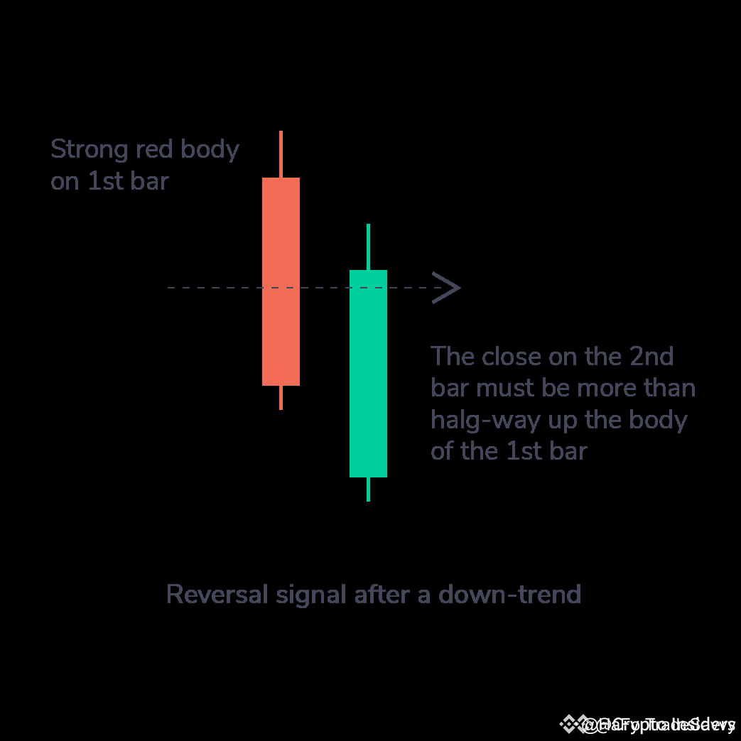 Đây là mô hình hai nến có một nến đỏ dài theo sau là một nến xanh dài. Ngoài ra, giá đóng cửa của nến thứ hai phải cao hơn một nửa thân nến đầu tiên. Điều này cho thấy áp lực mua mạnh.