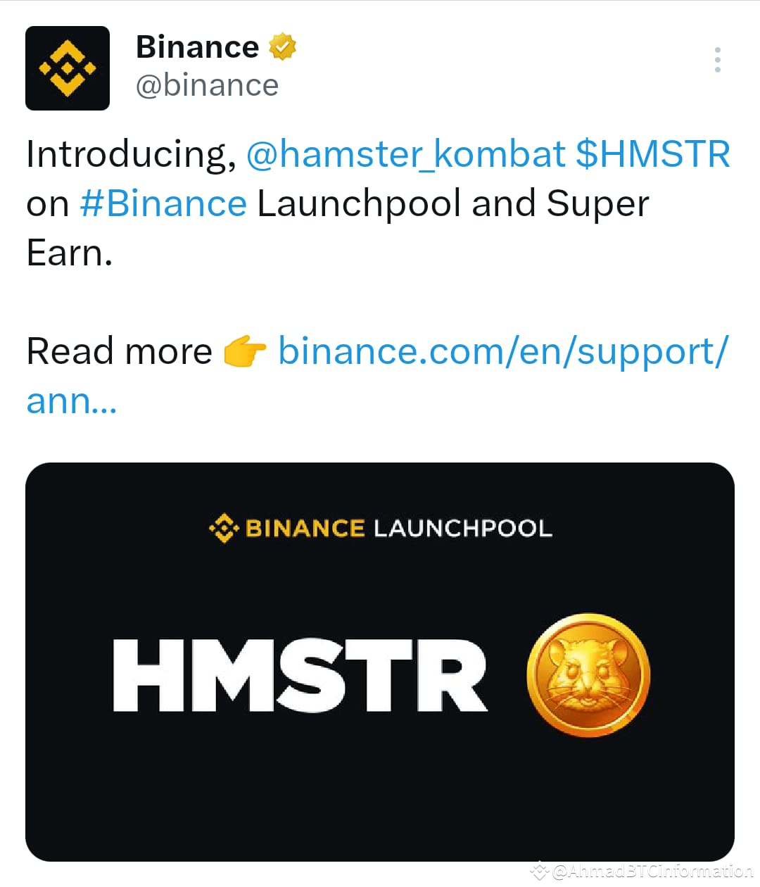 Hamster 🐹 good news specially 🗞️ binance launchpool
