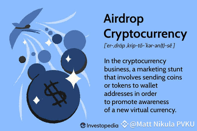 #AirDropSeries Crypto airdrops are a marketing strategy used by cryptocurrency projects to distribute free tokens or coins to potential users or investors. They aim to increase awareness, reward early adopters, or build a community around a new project. Here's a breakdown of how they work and various types of airdrops: