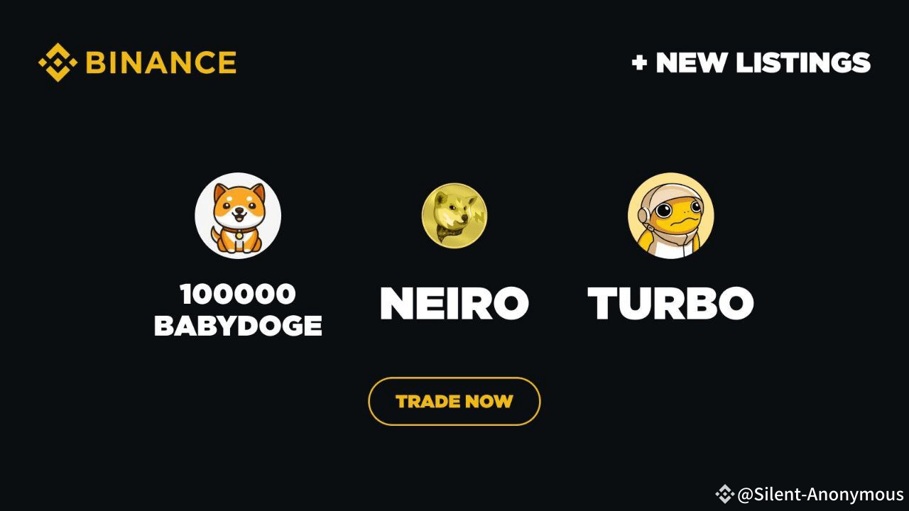 Binance will list First Neiro on Ethereum (NEIRO), Turbo (TURBO), Baby Doge Coin (1MBABYDOGE) and open trading for the following spot trading pairs at 2024-09-16 10:00 (UTC).