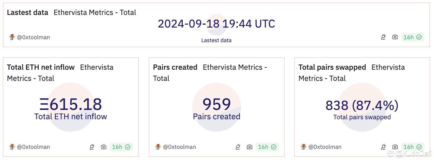 Theo dữ liệu từ Dune, sau 3 tuần hoạt động đã có 959 cặp token được tạo, 198.000 lần swap và 458 triệu USD khối lượng giao dịch.