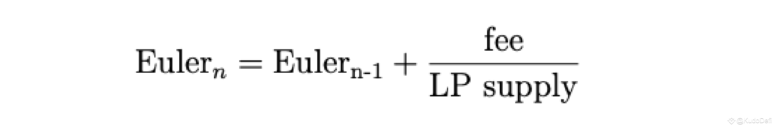 Khi một người dùng mới cung cấp thanh khoản cho cặp giao dịch đó, bên cạnh LP token nhận được, một biến số euler khởi tạo gọi là euler0 được gán cho LP đó với giá trị bằng với giá trị euler hiện tại Euler0 (của LP) = Eulern.