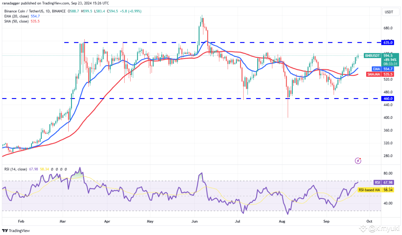 BNB (BNB) đã dần tăng lên đến $635, ngưỡng kháng cự của phạm vi lớn mà nó đã bị kẹt trong vài tháng qua.