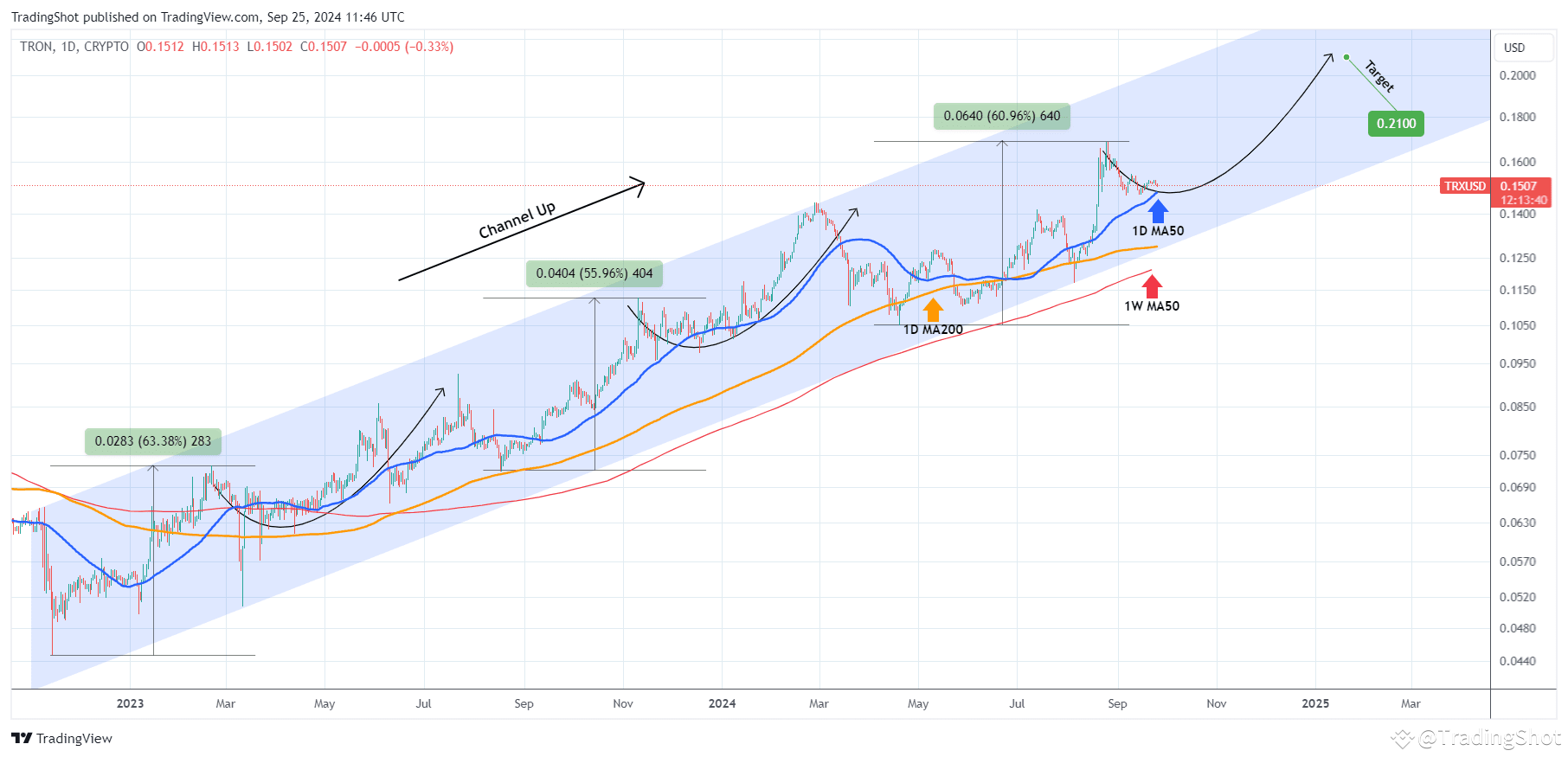 Tron (TRXUSD) has been trading within a Channel Up pattern since the November 14 2022 bottom. The price is now pulling back from the latest Higher High but remains above the 1D MA50 (blue trend-line).