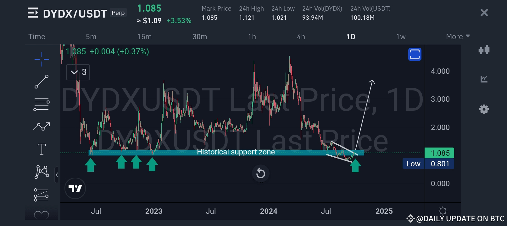 This is not financial advice. DYDX and other cryptocurrencies are highly volatile assets, so always do your own research and consider your risk tolerance before entering a trade.