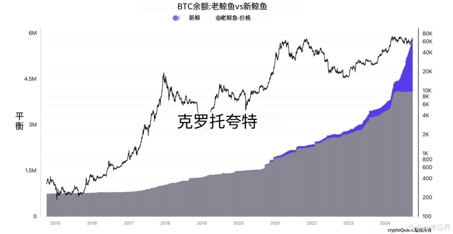 11.看新鲸鱼(管钱包和ETF)还在不停的购入 #BTC☀️ ,但老鲸鱼似乎增长略显平稳,从链上数据来看,已实现盈亏比已达到与本轮牛市底部一致的水平,并从超卖反弹,而看到的最近 $BTC 下跌多头糟受清算可以理解就是简单的杀杠杆(图三)