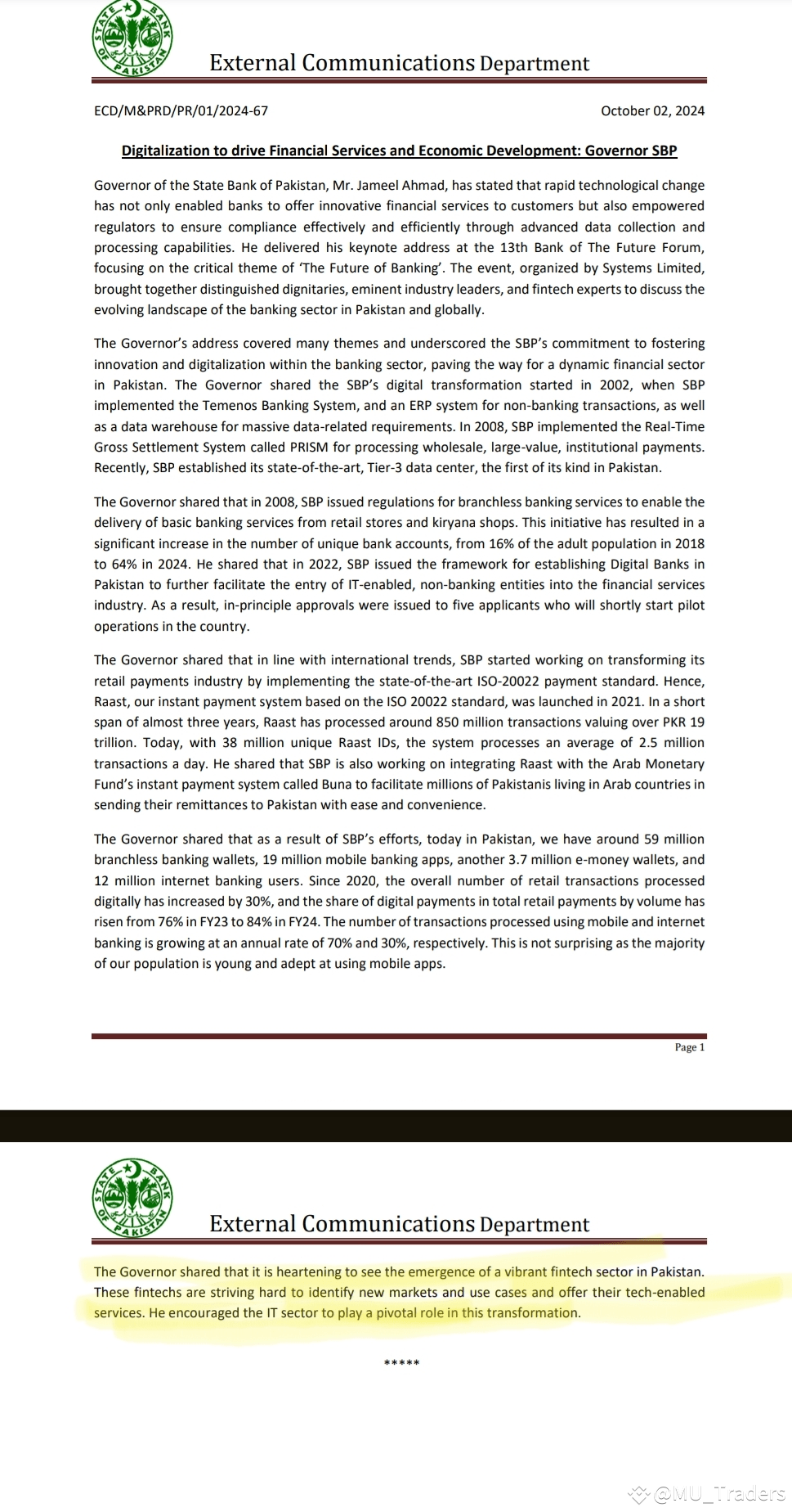 🔸 Today a press released by SBP in which they presented Governor of SBP overview about Fintech company that is using Blockchain and AI based payment services. Here are more details.