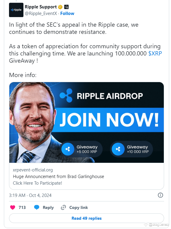 Kế hoạch airdrop của công ty, dự kiến diễn ra vào quý 4 năm 2024, trùng với nỗ lực gia tăng để giúp các giải pháp blockchain của Ripple dễ tiếp cận hơn. Ban lãnh đạo Ripple coi sáng kiến này là cách củng cố vai trò của XRP như một nền tảng của hệ sinh thái blockchain, đặc biệt là trong một thị trường mà các altcoin đang phải đối mặt với nhiều thách thức.