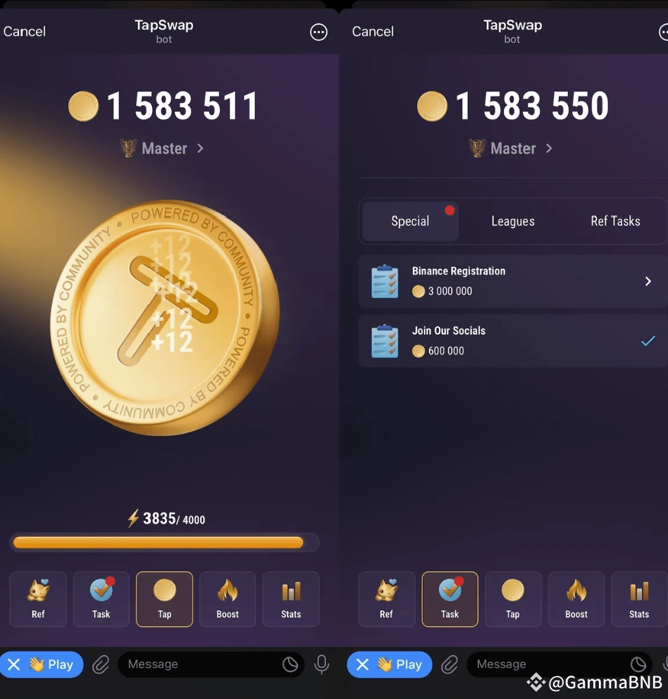 Players can also earn bonus points by completing special tasks, like joining TapSwap’s social media community or registering for a Binance exchange account (including KYC). Additionally, referring friends can earn you bonus points—not only an initial reward but also coins based on their in-game activity.