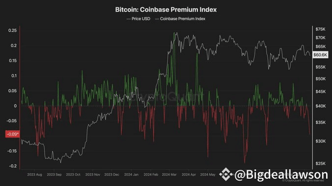 The Bitcoin Coinbase Premium Index is a key indicator that helps assess whether U.S. institutional investors or large traders are actively buying or selling $BTC on Coinbase compared to other exchanges. Currently, the index shows negative values, indicating a bearish sentiment in the market, with either significant selling pressure or a pause in accumulation by large investors.