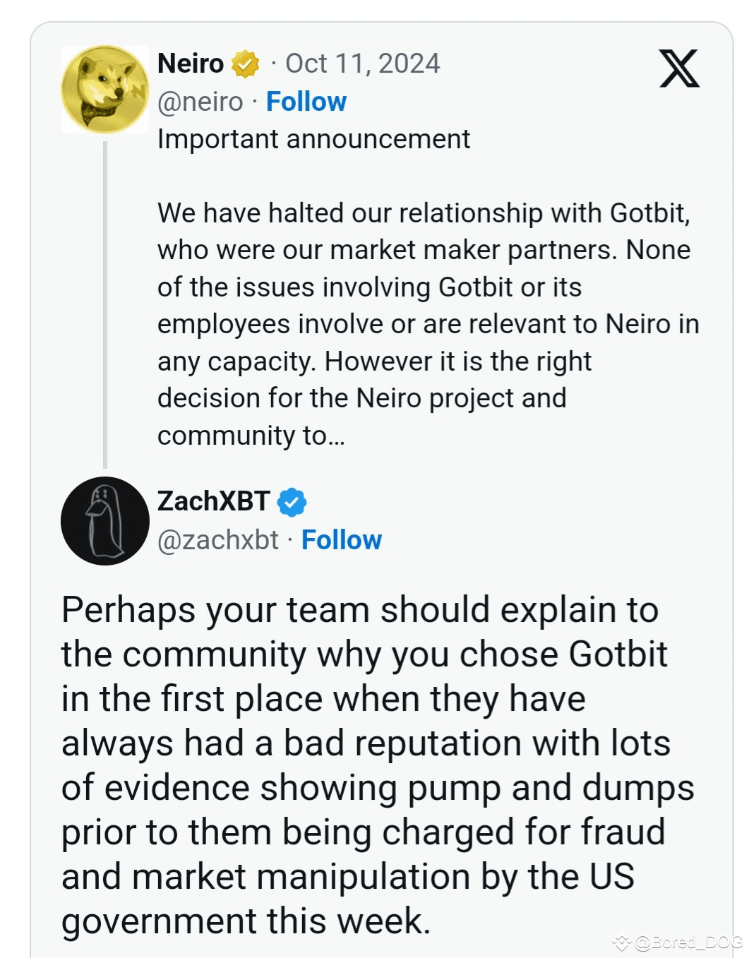Даже мем-коины, которые утверждают, что прекратили сотрудничество с Gotbit до этой недели, подчеркнули свое осуждение предполагаемого поведения компании.