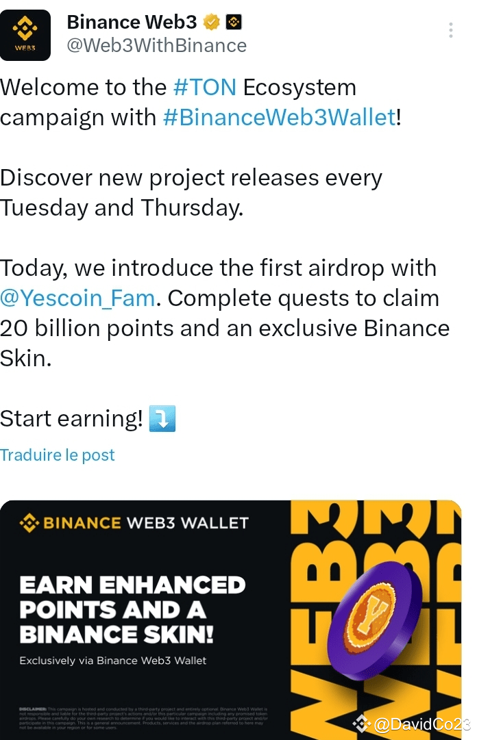 #tonecosystem #YescoinFam #BinanceWeb3Wallet! #CryptoAirdrop #Web3Innovation
