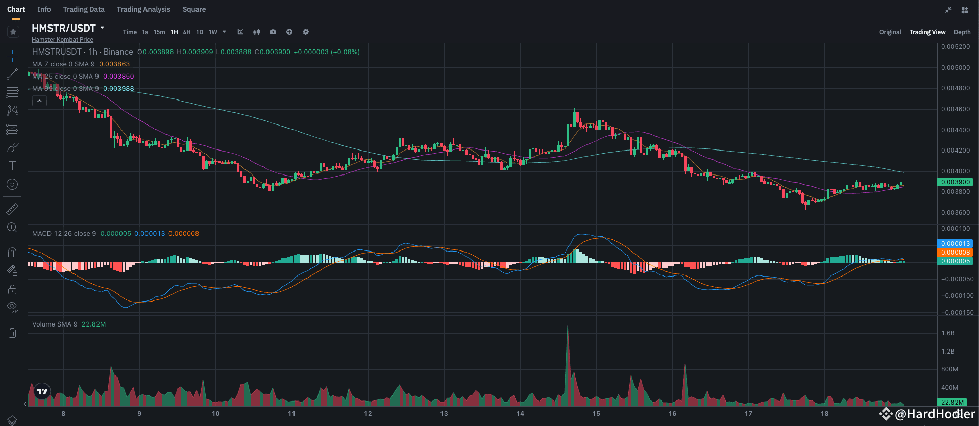 Hamster Kombat has shown resilience over the past few days, and while the price is still facing resistance, early signs of a reversal are starting to appear. The MACD is flashing green, and moving averages suggest that the bulls are beginning to test the waters. That said, HMSTR still has a lot to prove before we can call this a full-blown rally. 🐹💥