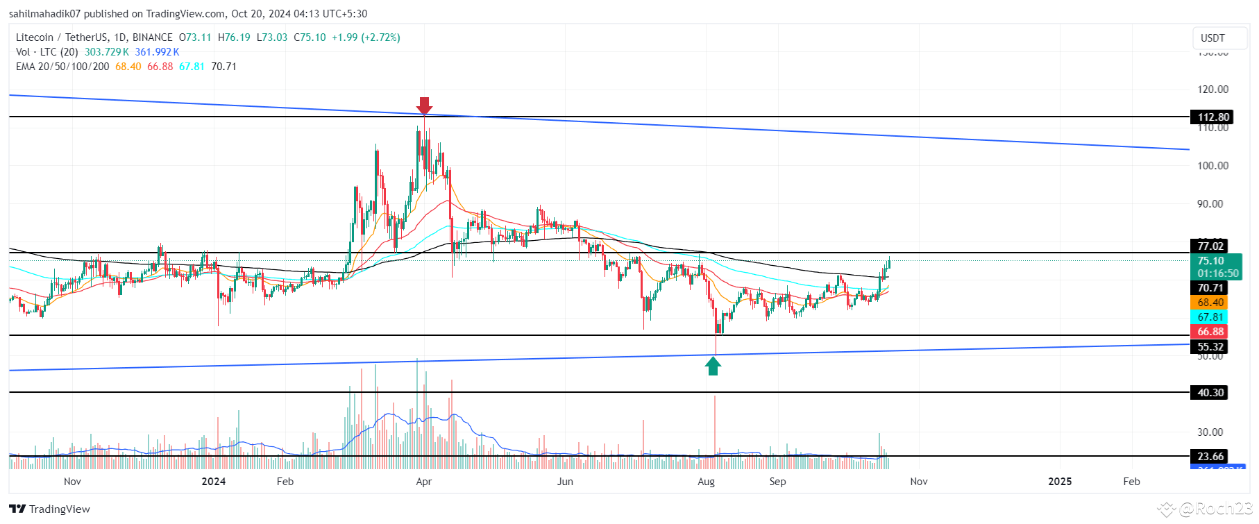 By press time, the Litecoin price had traded at $75.2, while the market cap had boosted to $5.6 billion.